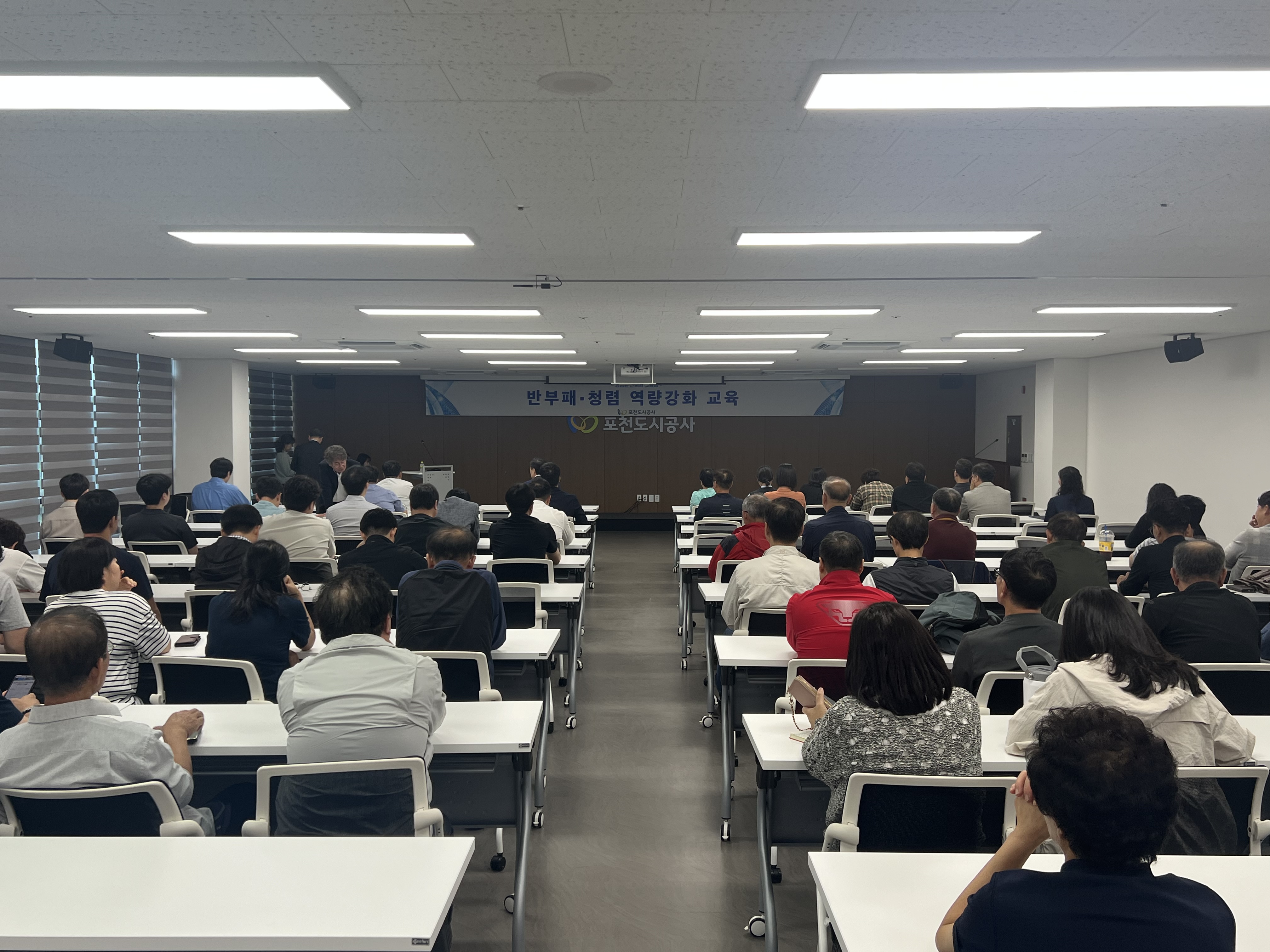 포천도시공사(사장 이상록)는 지난 9월 24일 수요일, 전 임직원을 대상으로 ‘2025년 반부패·청렴 역량 강화 교육’을 성공적으로 개최하였다.