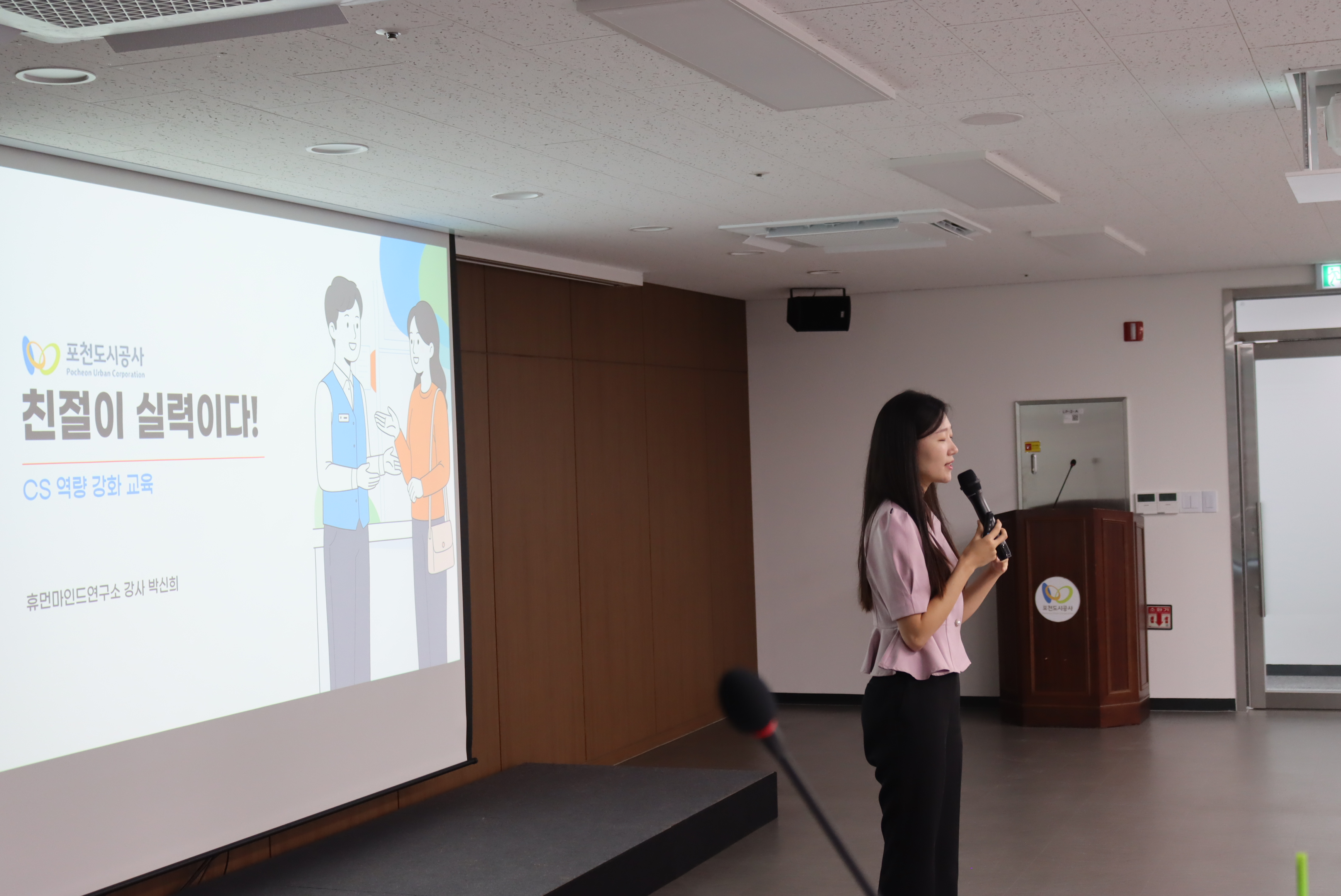포천도시공사는 지난 2025년 9월 24일 임직원이 함께하는 공감소통데이를 개최하였다. 이날 행사는 신규직원 소개, 적극행정 우수사례 표창 수여식, 비전가치 설명회, 개인정보보호 동영상 상영, 청렴교육, 친절교육, AI 특강 교육 순으로 진행되었다.