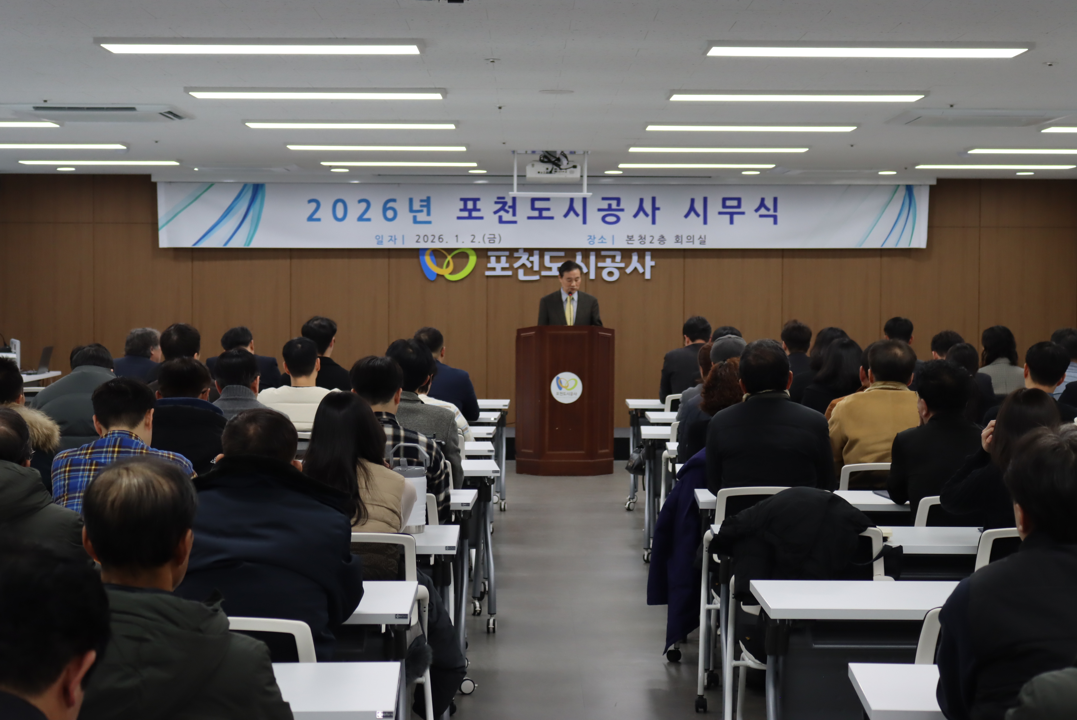 포천도시공사는 2026년 1월 2일 전직원이 함께하는 2026년 시무식을 개최하고 새해 업무의 본격적인 출발을 알렸다.